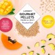 Singurele pelete naturale, puțin dulci, exclusiv din fructele adăugate în conținut. Fără zahăr sau fructoză adaugată.