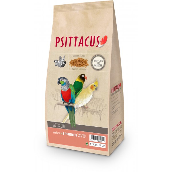 Preparare hrană umedă: Microsferele se pun într-un castron, se adaugă apă, se lasă timp de 30 de minute. Vor deveni pufoase gata să fie servite. Se recomandă adaugarea peste ele de legume presate sau de hrană praf dacă vor fi date la puii de papagali. Dacă vor fi servite simple proporțiile în volum sunt: 2 părți Microsfere + 1 parte apă. Dacă se vor adăuga legume, proporțiile sunt: 2 părți Microsfere + 1.5-2 părți apă + legume + 0.5-1 părți/parte hrană praf. Se va adăuga mai mult sau mai puțin cantitatea de hrană praf în funcție de cât de groas se vrea să fie amestecul.