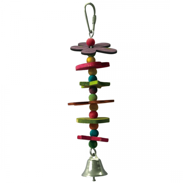 Jucarie colorata din lemn pentru pasari mici, ideala pentru joaca, rontait si catarat.